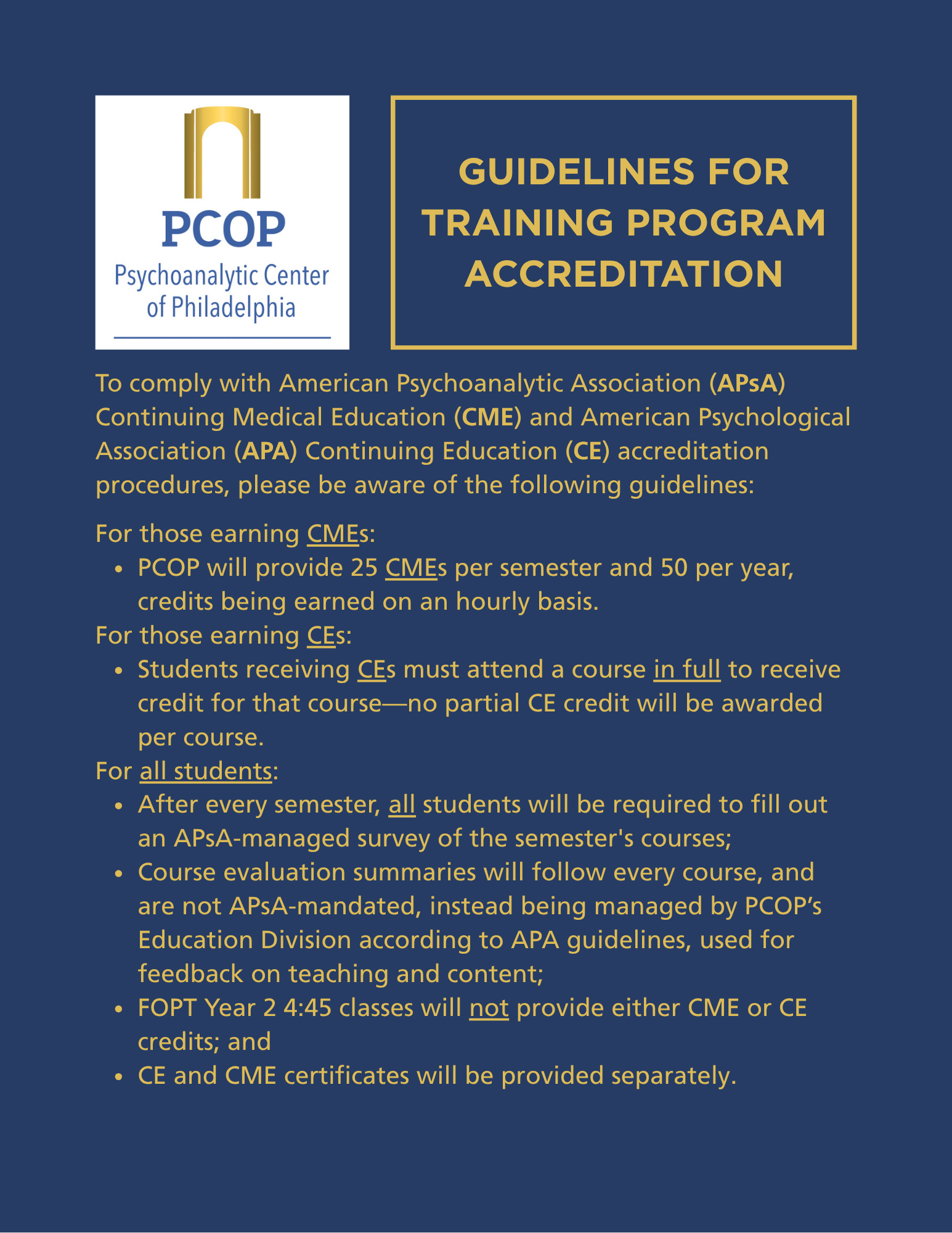 The Institute of the Psychoanalytic Center of Philadelphia is an approved training institute of the American Psychoanalytic Association.