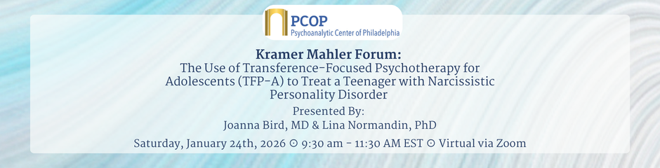 Program Flyer – Click here to learn more about the programRSVP – Click Here!Program Description Transference Focused Psychotherapy (TFP) is an evidence‐based, manualized psychoanalytic psychotherapy designed to treat adult personality disorders that has been adapted for the treatment of teenagers with personality pathology as Transference Focused Psychotherapy for Adolescents (TFP-A). Drs. Normandin and Bird will review the Structural Object Relations Theory that is the foundation of TFP and discuss a case in which TFP-A was used to treat a 17-year-old male with Narcissistic Personality Disorder (NPD). This presentation will highlight the techniques identified across modalities for successful treatment of pathological narcissism including goal setting, developing a therapeutic alliance, using a treatment contract and addressing treatment interfering behaviors while taking into consideration the reshaping of personality and interpersonal functioning that occurs in adolescents. The discussion will examine how Structural Object Relations Theory informs the assessment, strategies and specific challenges in the treatment of adolescents including differentiating identify diffusion from normative identity confusion, the goal of identity integration, and the collaboration with parents/caregivers. Upcoming 2026 Programs